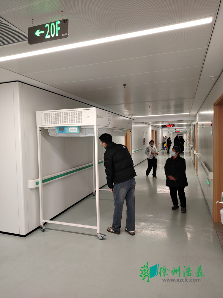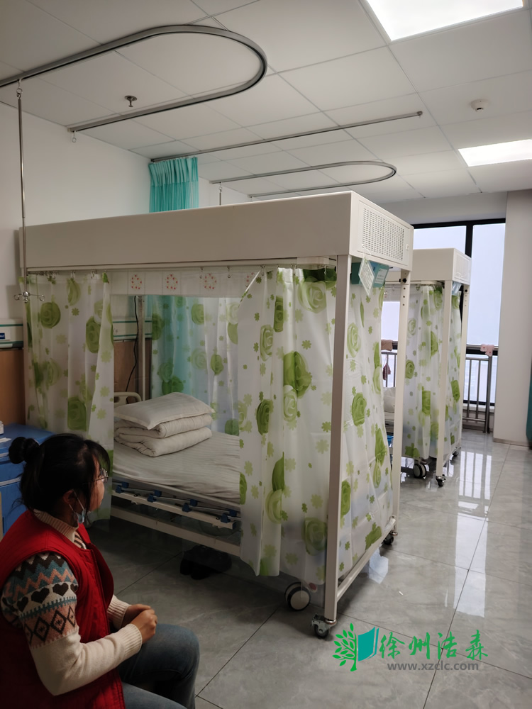 漢中醫(yī)院血液科采購的兩臺最新款的層流床(層流病床),做工更加精細,配有空氣監(jiān)測系統(tǒng),可實時查看罩內空氣質量。萬向腳輪,使用移動方便。